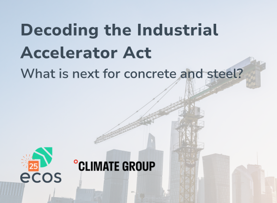 Co-hosted by ECOS and Climate Group, this webinar will provide in depth expertise on the Industrial Accelerator Act, particularly its implications for industrial decarbonisation.