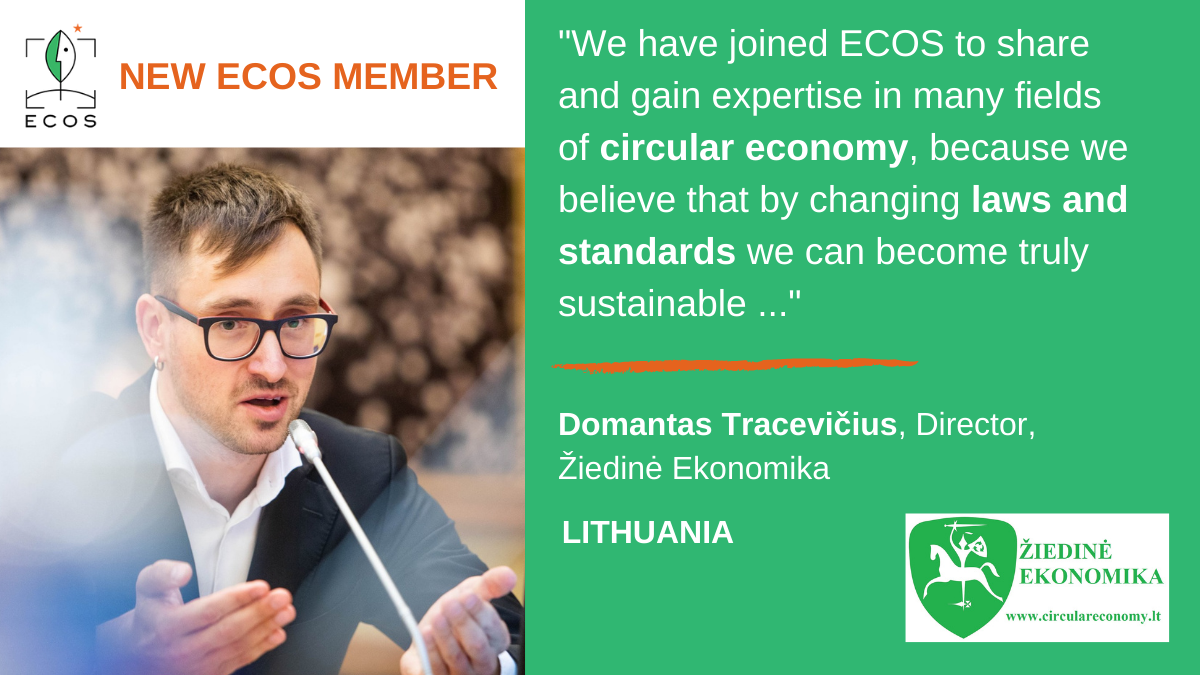 Domantas Tracevičius: We have joined ECOS to share and gain expertise in many fields of circular economy because we believe that by changing laws and standards we can become truly sustainable in a rather reasonably fast time.